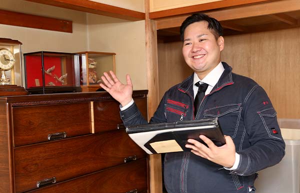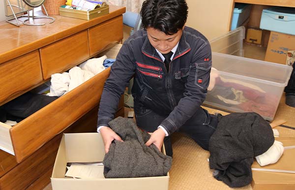 私たちはいつもご依頼主様のことを第一に考え、丁寧で誠実な対応を心がけています。とくに遺品整理では、ご遺族様が悲しみを抱えたまま進めなくてはならず、心のご負担になる場合もあります。そんなときにご遺族様に代わって、手となり足となって働き、深くサポートできるのが当社です。故人様、ご遺族様、ご家族様のことを想って遺品整理・生前整理を決断されたご本人様のお気持ちに寄り添います。