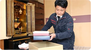 形見分けのご遺品を全国配送。お仏壇・神棚・故人様のご愛用品など、ご供養を希望されるものは提携寺院に運び、お焚き上げによる合同供養を行います。