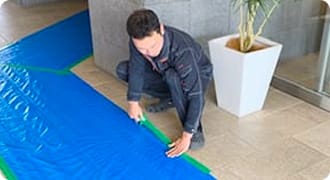 搬出のプロが、小さくて軽いものから大きくて重たい家財まで安全に運び出します。必要に応じて、専用の梱包材で家財を梱包、建物の養生も丁寧に行います。