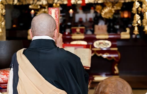 お仏壇の魂抜き・お性根抜きを、遺品整理プロスタッフ千葉の提携寺院かご自宅に僧侶を招いて実施。引取り後は丁寧に処分します。
