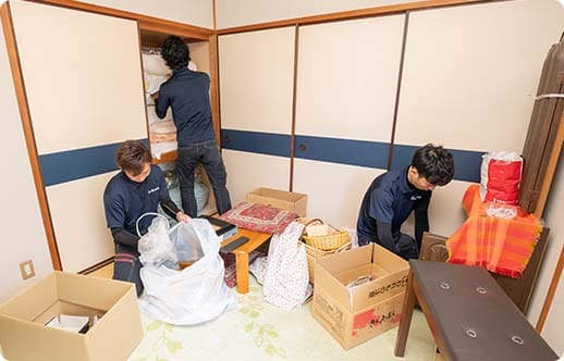 「退去日が近いのに家財が多くて片付かない」「空き家になるので早く解体・売却したい」など、千葉県のお客様の「困った」にいつでも駆けつけてスピーディーに対応します。