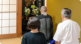 お仏壇の魂抜き・お性根抜きを寺院または神戸のご自宅に僧侶を招いて行います。引取り後は適切に処分します。