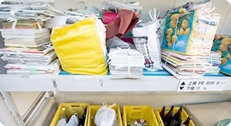 05   不用品の処分遺品整理プロスタッフ京都では、不用なご遺品を高価買取でリユース&資源リサイクルのため細分別を徹底しています。廃棄するものも京都の自治体のルールに準じて適正処理します。