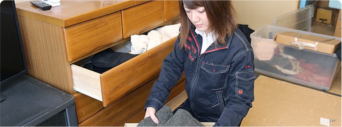 整理する場所によっては、配慮の行き届いた女性スタッフのみで対応することも可能です(応相談)。力仕事などは頼れる男性スタッフにお任せいただけます。