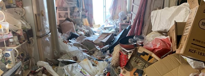 どんなに荒れ放題のゴミ屋敷でも、大阪の遺品整理プロスタッフにお任せください。精鋭スタッフと車両を大量投入し、近隣に配慮しながら一気に片付けます。