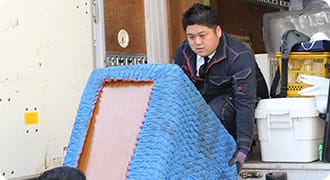 大阪の遺品整理プロスタッフでは、搬出のプロが、小さいものから大きくて重たい家財まで安全に搬出。必要に応じてご遺品の梱包や建物の養生も行います。