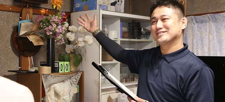 現地お見積りにお伺い遺品整理プロスタッフ和歌山では誠実なご対応の一環として、現地を確認した後にお見積りを出しています。和歌山県内の対応エリア内でしたら最短60分でお伺いしますので、ぜひお電話ください。