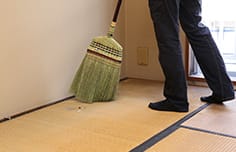 遺品整理プロスタッフでは、遺品整理後にチリやホコリを取り除く掃き掃除をサービスしています。簡易清掃後、全作業内容のご説明を行い、すっきりしたお部屋をご確認いただきます。