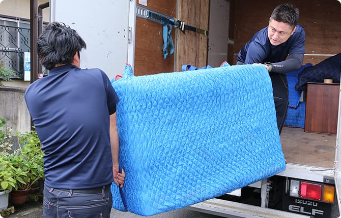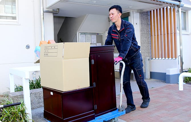 遺品整理の当日にご遺品の配送をご依頼いただければ、全国各地のご指定住所までの配送を手配します。配送先は1カ所でも複数カ所でも問題ありません。また、遠方はもちろん近場の配送も承ります。大きくて重いものの搬出・搬入を慣れていない方が行うと、落として怪我をする場合があります。無理をせず遺品整理プロスタッフにご依頼ください。