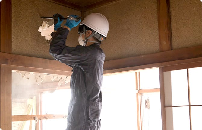 防塵・防音対策を行い、苦情やトラブルが発生しないように配慮しながら工事を進めます。解体物を搬出し、養生を片付けたら、清掃を行って終了です。