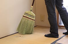 プロスタッフならではのサービスで、チリやホコリを取り除く掃き掃除を実施。簡易清掃後、作業内容をご説明しながら各お部屋をご確認いただきます。