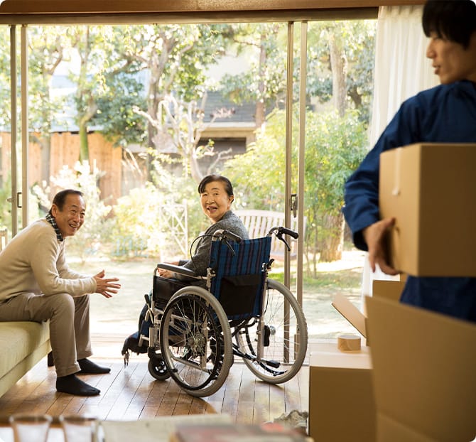 生前整理のご相談は年々増えていますが、プロスタッフにいただくご依頼でとくに多いのは、施設などへの入居に伴う生前整理+お引越しのご依頼です。プロスタッフにお任せいただければ、生前整理後に高齢者住宅や老人ホーム、お子様のお住まい、ご親戚宅などに引越される予定がある場合も、引越し業者を手配する必要はありません。