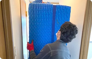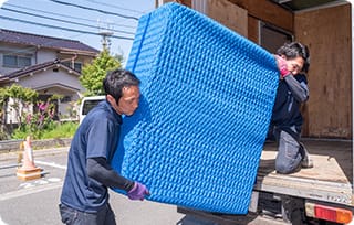 介護施設など新居で使用される大切な家財を運搬時に傷つけないよう、家具や家電、インテリアなど箱に入らないものは丁寧に梱包します。