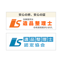 遺品整理プロスタッフは、遺品整理士認定協会より、適切に遺品整理を行う優良企業として認定されています。安心してご利用ください。