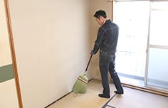 遺品整理プロスタッフでは、ご遺品をすべて搬出したあとにサービスで掃き掃除を行います。遺品整理の際には、物陰に蓄積されていたチリやホコリが想像以上に現れます。それらを除去することで、ご遺族様のお気持ちもすっきりしていただきたいと考えています。徹底的にキレイにしたい場合は、ハウスクリーニング、リフォームなども承ります。