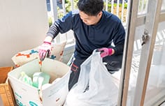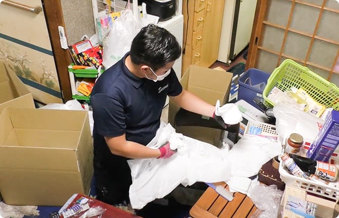 作業スペースを確保しながら、手早く可燃物・不燃物などに分別していきます。不用な家財の買取・回収も実施。まとめたゴミ・不用品は迅速に搬出します。
